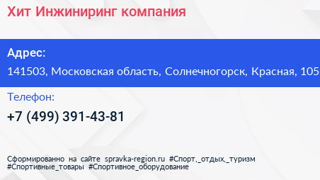 Хит Инжиниринг, компания по адресу 141503, Московская область, Солнечногорск, Красная, 105 в дальнейшем Организация, размещена в следующих категориях: