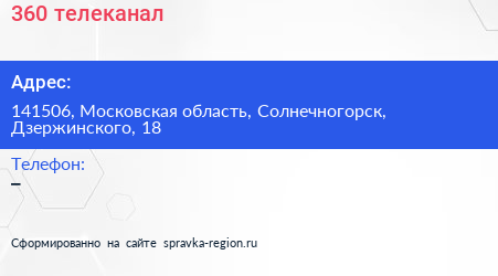 360°, телеканал по адресу 141506, Московская область, Солнечногорск, Дзержинского, 18 в дальнейшем Организация, размещена в следующих категориях: