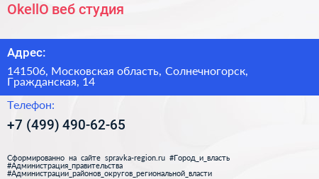 OkellO, веб-студия по адресу 141506, Московская область, Солнечногорск, Гражданская, 14 в дальнейшем Организация, размещена в следующих категориях: