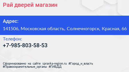 Рай дверей, магазин по адресу 141506, Московская область, Солнечногорск, Красная, 66 в дальнейшем Организация, размещена в следующих категориях:
