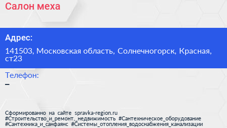 Салон меха по адресу 141503, Московская область, Солнечногорск, Красная, ст23 в дальнейшем Организация, размещена в следующих категориях: