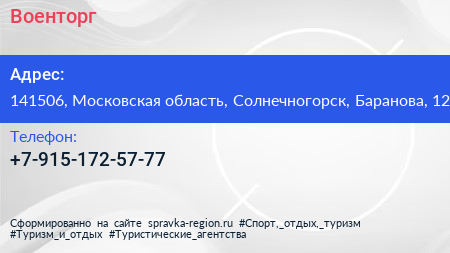 Военторг по адресу 141506, Московская область, Солнечногорск, Баранова, 12 в дальнейшем Организация, размещена в следующих категориях: