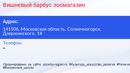 Вишневый барбус, зоомагазин по адресу 141506, Московская область, Солнечногорск, Дзержинского, 18 в дальнейшем Организация, размещена в следующих категориях: