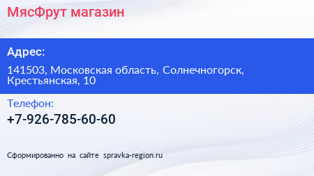 МясФрут, магазин по адресу 141503, Московская область, Солнечногорск, Крестьянская, 10 в дальнейшем Организация, размещена в следующих категориях: