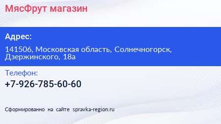 МясФрут, магазин по адресу 141506, Московская область, Солнечногорск, Дзержинского, 18а в дальнейшем Организация, размещена в следующих категориях: