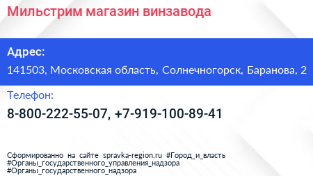 Мильстрим, магазин винзавода по адресу 141503, Московская область, Солнечногорск, Баранова, 2 в дальнейшем Организация, размещена в следующих категориях: