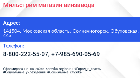 Мильстрим, магазин винзавода по адресу 141504, Московская область, Солнечногорск, Обуховская, 44а в дальнейшем Организация, размещена в следующих категориях: