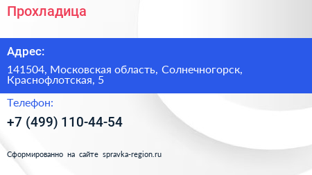 Прохладица по адресу 141504, Московская область, Солнечногорск, Краснофлотская, 5 в дальнейшем Организация, размещена в следующих категориях: