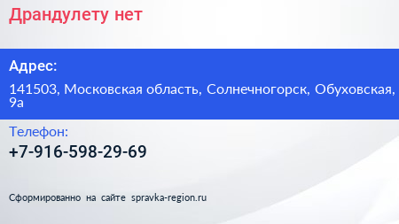 Драндулету.нет по адресу 141503, Московская область, Солнечногорск, Обуховская, 9а в дальнейшем Организация, размещена в следующих категориях: