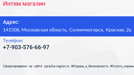 Интим-магазин по адресу 141508, Московская область, Солнечногорск, Красная, 2а в дальнейшем Организация, размещена в следующих категориях: