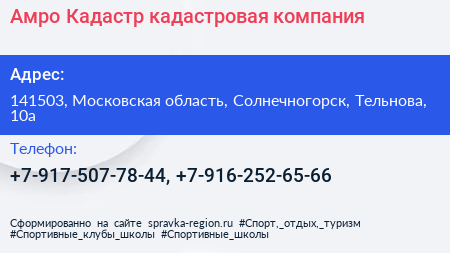 Амро-Кадастр, кадастровая компания по адресу 141503, Московская область, Солнечногорск, Тельнова, 10а в дальнейшем Организация, размещена в следующих категориях: