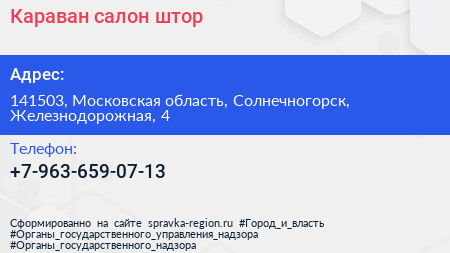 Караван, салон штор по адресу 141503, Московская область, Солнечногорск, Железнодорожная, 4 в дальнейшем Организация, размещена в следующих категориях:
