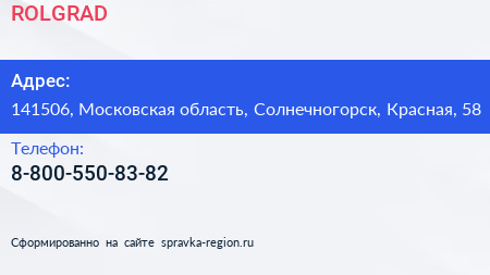ROLGRAD по адресу 141506, Московская область, Солнечногорск, Красная, 58 в дальнейшем Организация, размещена в следующих категориях: