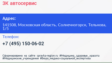 3К, автосервис по адресу 141508, Московская область, Солнечногорск, Тельнова, 1/5 в дальнейшем Организация, размещена в следующих категориях: