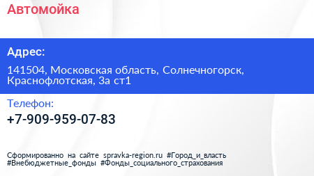 Автомойка по адресу 141504, Московская область, Солнечногорск, Краснофлотская, 3а ст1 в дальнейшем Организация, размещена в следующих категориях: