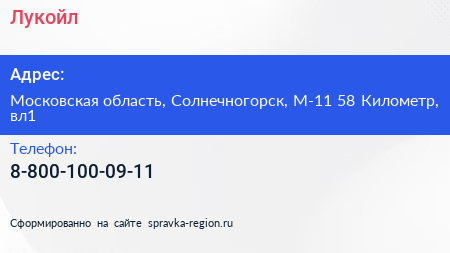 Лукойл по адресу Московская область, Солнечногорск, М-11 58 Километр, вл1 в дальнейшем Организация, размещена в следующих категориях: