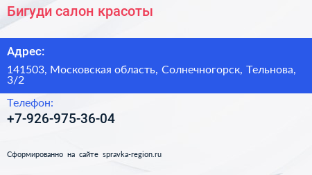 Бигуди, салон красоты по адресу 141503, Московская область, Солнечногорск, Тельнова, 3/2 в дальнейшем Организация, размещена в следующих категориях: