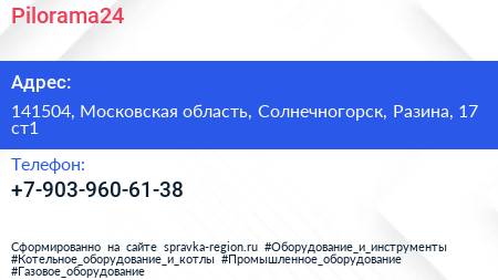 Pilorama24 по адресу 141504, Московская область, Солнечногорск, Разина, 17 ст1 в дальнейшем Организация, размещена в следующих категориях: