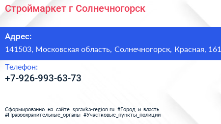 Строймаркет, г. Солнечногорск по адресу 141503, Московская область, Солнечногорск, Красная, 161 в дальнейшем Организация, размещена в следующих категориях: