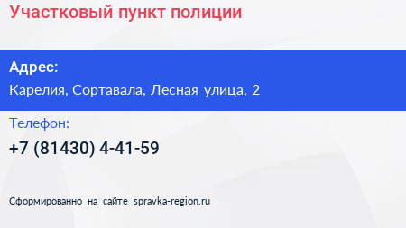 Участковый пункт полиции по адресу Карелия, Сортавала, Лесная улица, 2 в дальнейшем Организация, размещена в следующих категориях:
