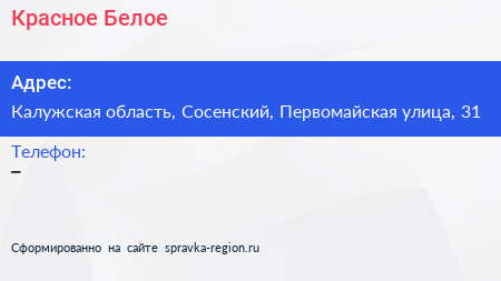 Красное & Белое по адресу Калужская область, Сосенский, Первомайская улица, 31 в дальнейшем Организация, размещена в следующих категориях: