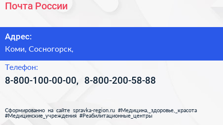 Почта России по адресу Коми, Сосногорск, в дальнейшем Организация, размещена в следующих категориях: