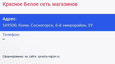 Красное & Белое, сеть магазинов по адресу 169500, Коми, Сосногорск, 6-й микрорайон, 19 в дальнейшем Организация, размещена в следующих категориях: