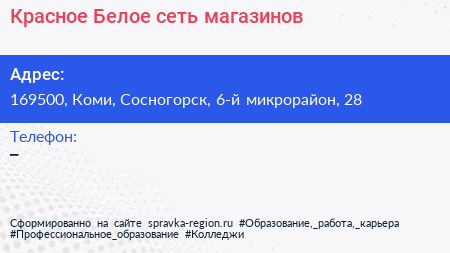 Красное & Белое, сеть магазинов по адресу 169500, Коми, Сосногорск, 6-й микрорайон, 28 в дальнейшем Организация, размещена в следующих категориях: