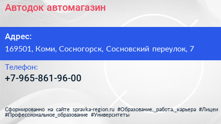 Автодок, автомагазин по адресу 169501, Коми, Сосногорск, Сосновский переулок, 7 в дальнейшем Организация, размещена в следующих категориях: