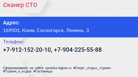 Сканер, СТО по адресу 169501, Коми, Сосногорск, Ленина, 3 в дальнейшем Организация, размещена в следующих категориях: