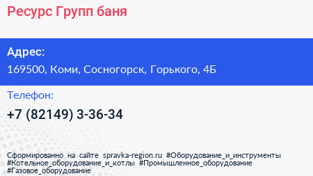 Ресурс-Групп, баня по адресу 169500, Коми, Сосногорск, Горького, 4Б в дальнейшем Организация, размещена в следующих категориях: