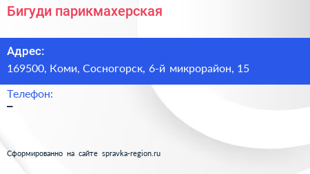 Бигуди, парикмахерская по адресу 169500, Коми, Сосногорск, 6-й микрорайон, 15 в дальнейшем Организация, размещена в следующих категориях: