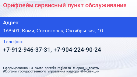 Орифлейм, сервисный пункт обслуживания по адресу 169501, Коми, Сосногорск, Октябрьская, 10 в дальнейшем Организация, размещена в следующих категориях: