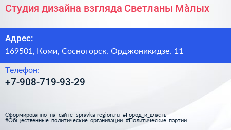 Студия дизайна взгляда Светланы Màлых по адресу 169501, Коми, Сосногорск, Орджоникидзе, 11 в дальнейшем Организация, размещена в следующих категориях: