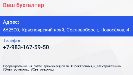 Ваш бухгалтер по адресу 662500, Красноярский край, Сосновоборск, Новосёлов, 4 в дальнейшем Организация, размещена в следующих категориях: