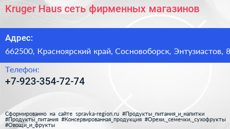 Kruger Haus, сеть фирменных магазинов по адресу 662500, Красноярский край, Сосновоборск, Энтузиастов, 8 в дальнейшем Организация, размещена в следующих категориях:
