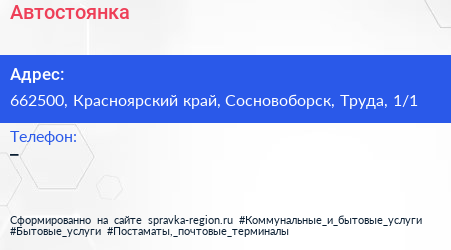 Автостоянка по адресу 662500, Красноярский край, Сосновоборск, Труда, 1/1 в дальнейшем Организация, размещена в следующих категориях: