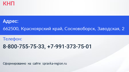КНП по адресу 662500, Красноярский край, Сосновоборск, Заводская, 2 в дальнейшем Организация, размещена в следующих категориях: