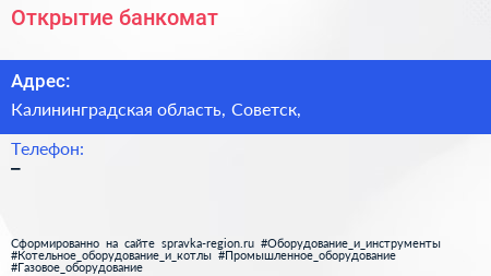 Открытие, банкомат по адресу Калининградская область, Советск, в дальнейшем Организация, размещена в следующих категориях:
