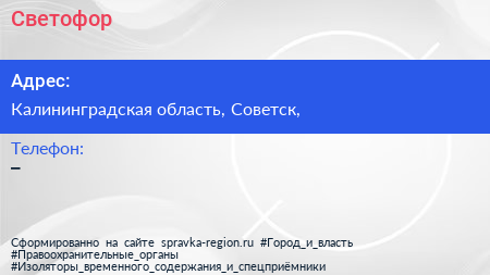 Светофор по адресу Калининградская область, Советск, в дальнейшем Организация, размещена в следующих категориях: