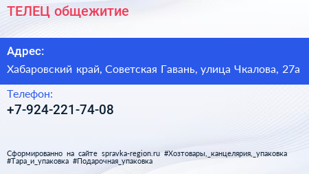 ТЕЛЕЦ, общежитие по адресу Хабаровский край, Советская Гавань, улица Чкалова, 27а в дальнейшем Организация, размещена в следующих категориях: