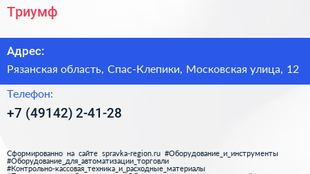 Триумф по адресу Рязанская область, Спас-Клепики, Московская улица, 12 в дальнейшем Организация, размещена в следующих категориях: