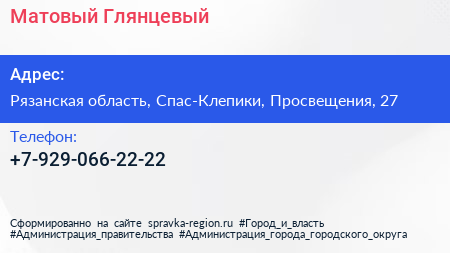 Матовый & Глянцевый по адресу Рязанская область, Спас-Клепики, Просвещения, 27 в дальнейшем Организация, размещена в следующих категориях: