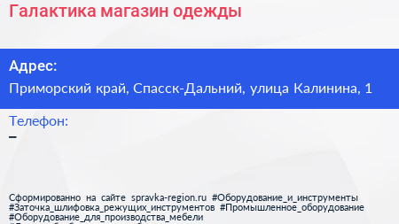 Галактика, магазин одежды по адресу Приморский край, Спасск-Дальний, улица Калинина, 1 в дальнейшем Организация, размещена в следующих категориях: