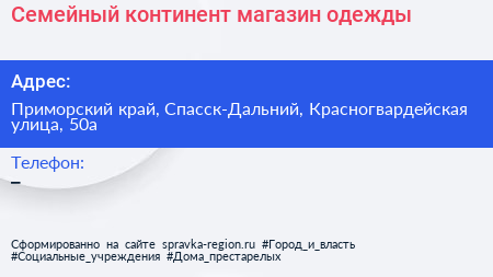 Семейный континент, магазин одежды по адресу Приморский край, Спасск-Дальний, Красногвардейская улица, 50а в дальнейшем Организация, размещена в следующих категориях: