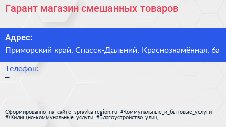 Гарант, магазин смешанных товаров по адресу Приморский край, Спасск-Дальний, Краснознамённая, 6а в дальнейшем Организация, размещена в следующих категориях: