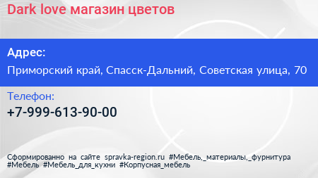 Dark love, магазин цветов по адресу Приморский край, Спасск-Дальний, Советская улица, 70 в дальнейшем Организация, размещена в следующих категориях: