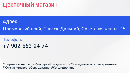 Цветочный магазин по адресу Приморский край, Спасск-Дальний, Советская улица, 45 в дальнейшем Организация, размещена в следующих категориях:
