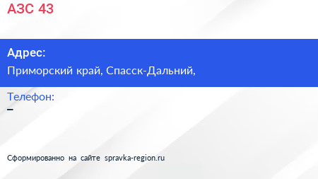 АЗС №43 по адресу Приморский край, Спасск-Дальний, в дальнейшем Организация, размещена в следующих категориях: