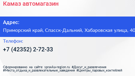 Камаз, автомагазин по адресу Приморский край, Спасск-Дальний, Хабаровская улица, 40 в дальнейшем Организация, размещена в следующих категориях: